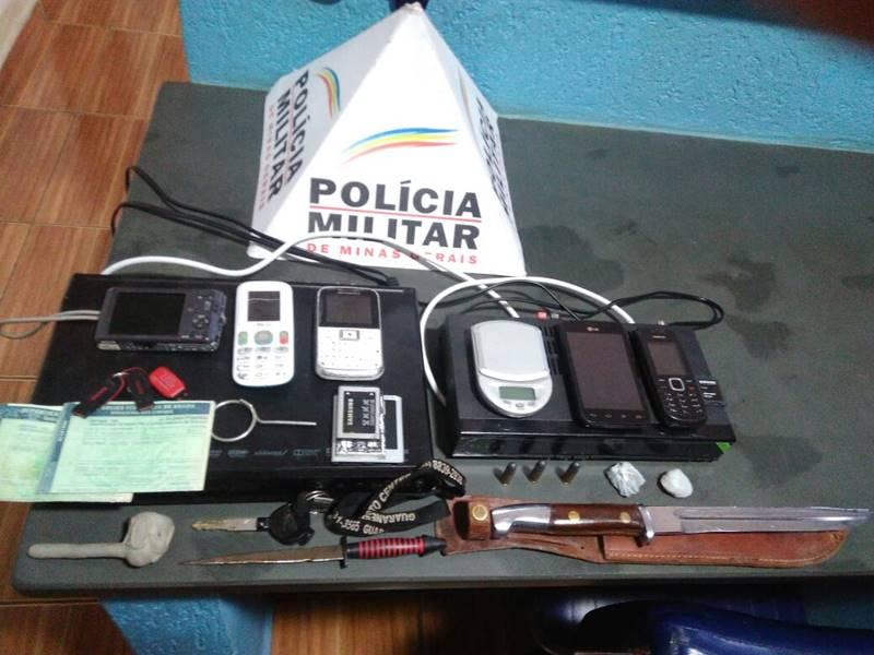 Acionada, a Polícia Militar se deslocou rapidamente ao local dos fatos, tendo encontrado os autores ainda tentando dar partida na motocicleta. Ao perceberem a presença policial, os assaltantes saíram correndo e entraram em um matagal próximo. Iniciadas as buscas no local, foram encontrados Fernando Ferreira, de 18 anos, o qual confessou ter participado do delito, dizendo ainda que estava acompanhado de outros dois rapazes, um de 15 e outro de 14 anos. Em continuidade c nas buscas, um dos menores, E.C.S de 14 anos também foi localizado, tendo os militares recebido a informação que o último suspeito estaria escondido n casa de seu irmão. Solicitado o mandado de busca e apreensão, as autoridades se deslocaram até o suposto esconderijo do terceiro autor, onde após buscas pela residência foram encontradas 2 buchas de maconha com aproximadamente 30 grama cada, balança de precisão, 3 cartuchos de munição calibre 32 intactas, além de diversos materiais de origem duvidosa, tendo o proprietário sido preso, porém o terceiro envolvido no assalto, o menor T.M de 15 anos, não foi encontrado na referida residência. Diante do fato, os autores assim como o proprietário dos objetos citados foram detidos e levados para a delegacia para a realização dos demais trabalhos de praxe.